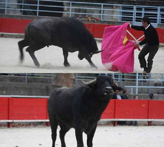 O touro investe em objectos ou seres em movimento, por medo; o touro ante um movimento, repara e assusta-se; o medo fá-lo correr sem direcção; o touro investe na capa porque esta lhe molesta a visão e cansa a sua retina e devido a essa dor investe, para se libertar da mesma.